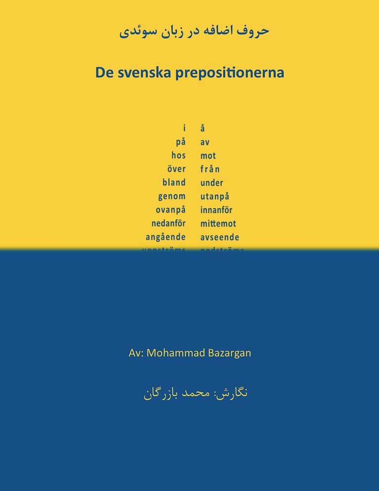 Är den första boken om svenska prepositioner som ges ut i persisk översättning. Målet med boken är att samla och förklara en rad viktiga regler för korrekt användning av prepositioner i svenskan. Boken riktar sig till persisktalande studenter på SFI, svenska som andra språk (SVA) samt till dem som går motsvarande kurser eller studerar på egenhand. Utöver dessa grupper vänder sig boken även till parsisktalande invandrare i allmänhet, som trots långvarig vistelse i Sverige fortfarande behöver utveckla sina kunskaper om svenska prepositioner.
